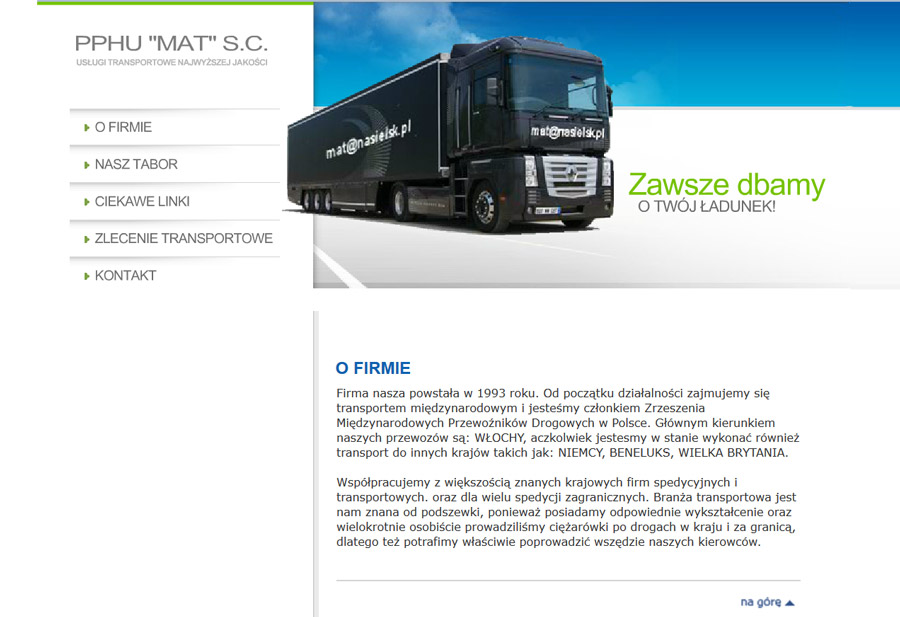 Przenieśliśmy stronę firmy transportowej MAT S.C. na nasz hosting www.matnasielsk.pl.