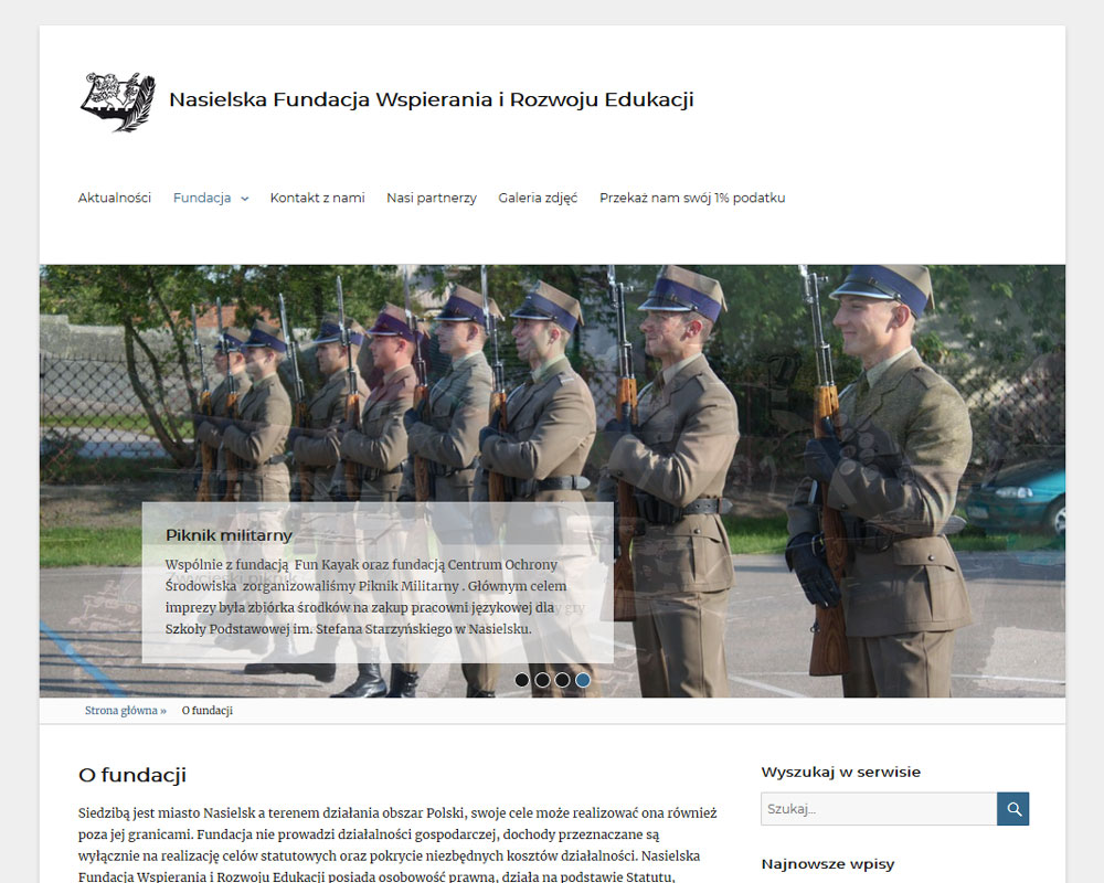 - Klient: Nasielska Fundacja Wspierania i Rozwoju Edukacji Zakres prac: Wykonanie serwisu www opartego na CMS WordPress, usługi hostingowe. Technologie: php, html, mysql, jquery. Adres: www.fundacjaszkola.nasielsk.pl
