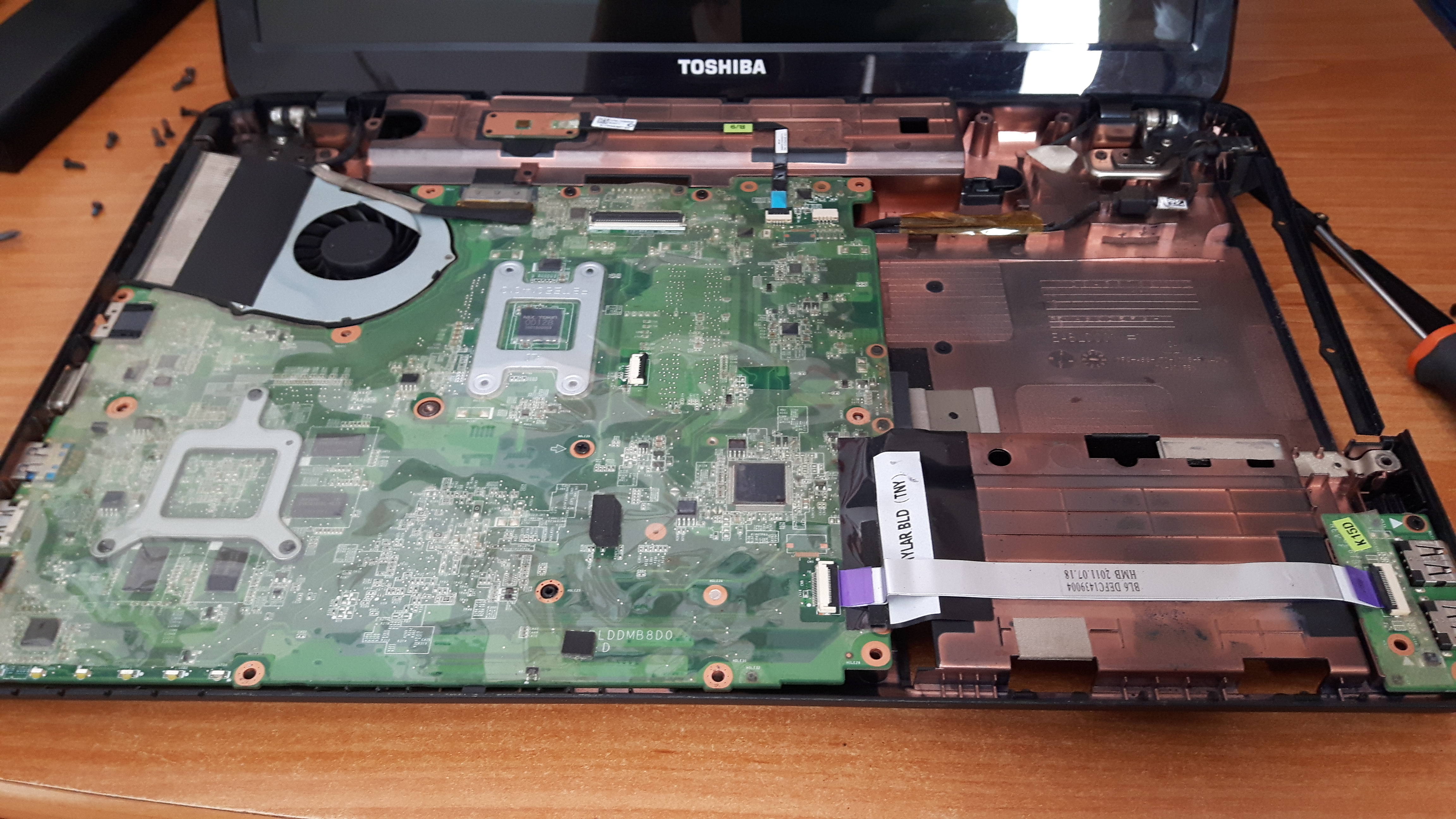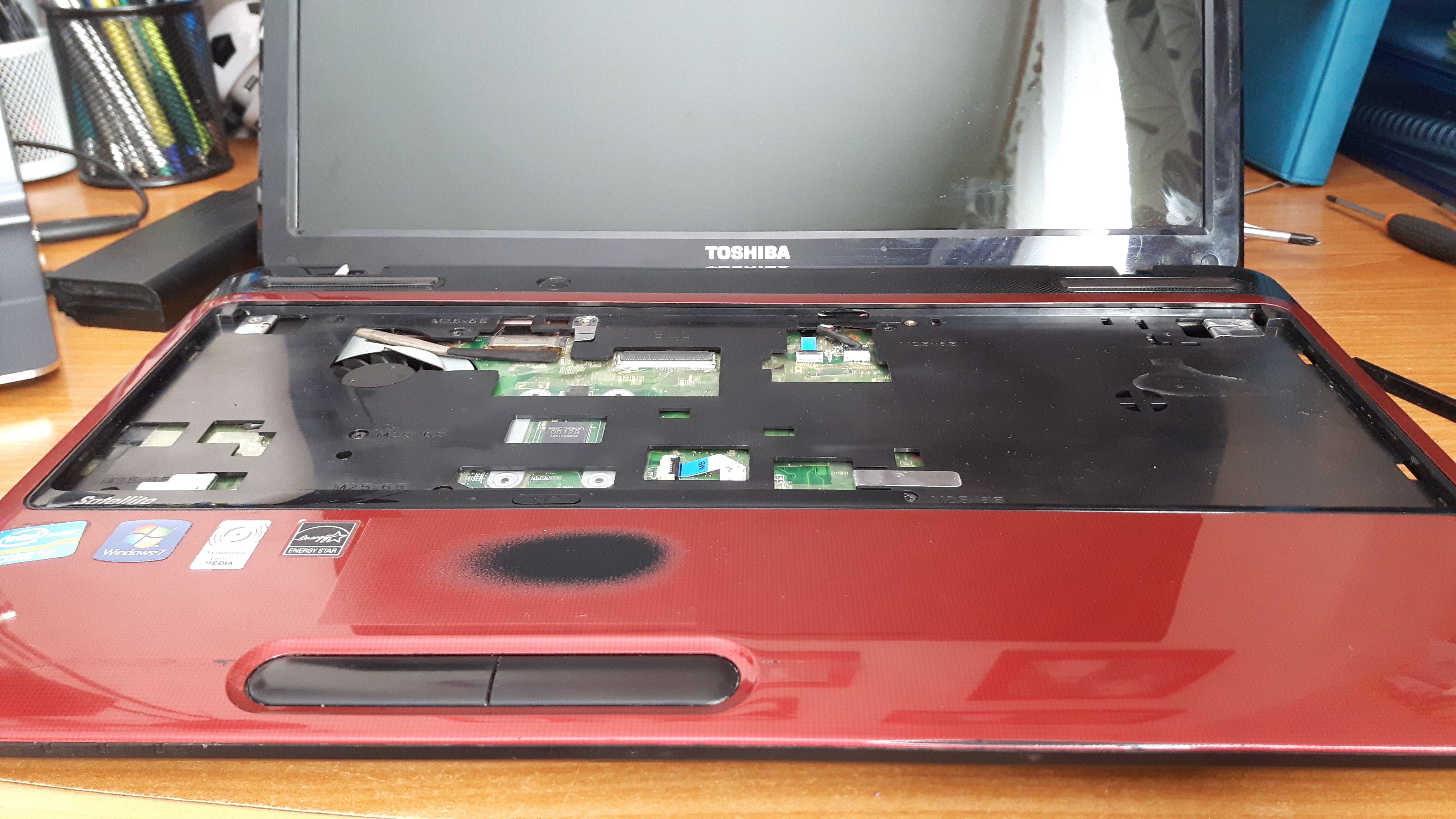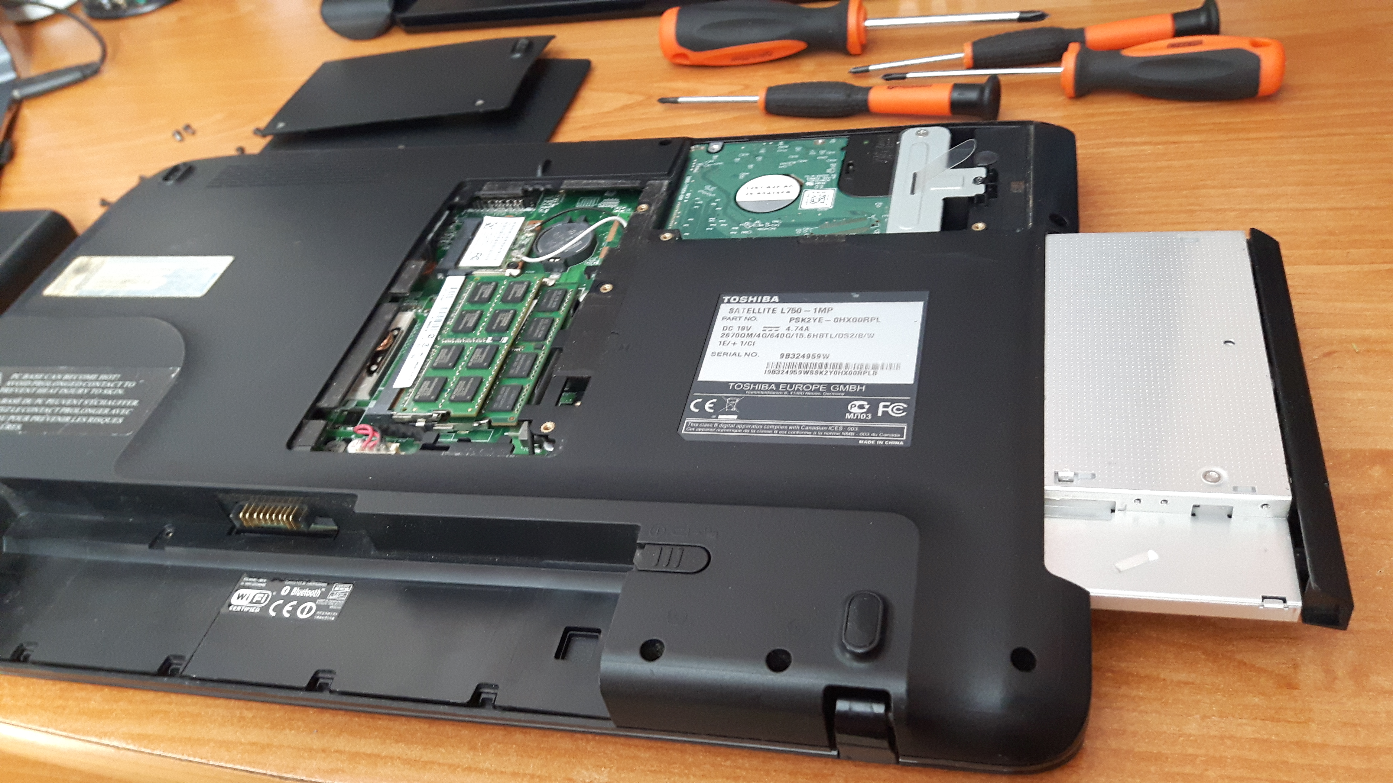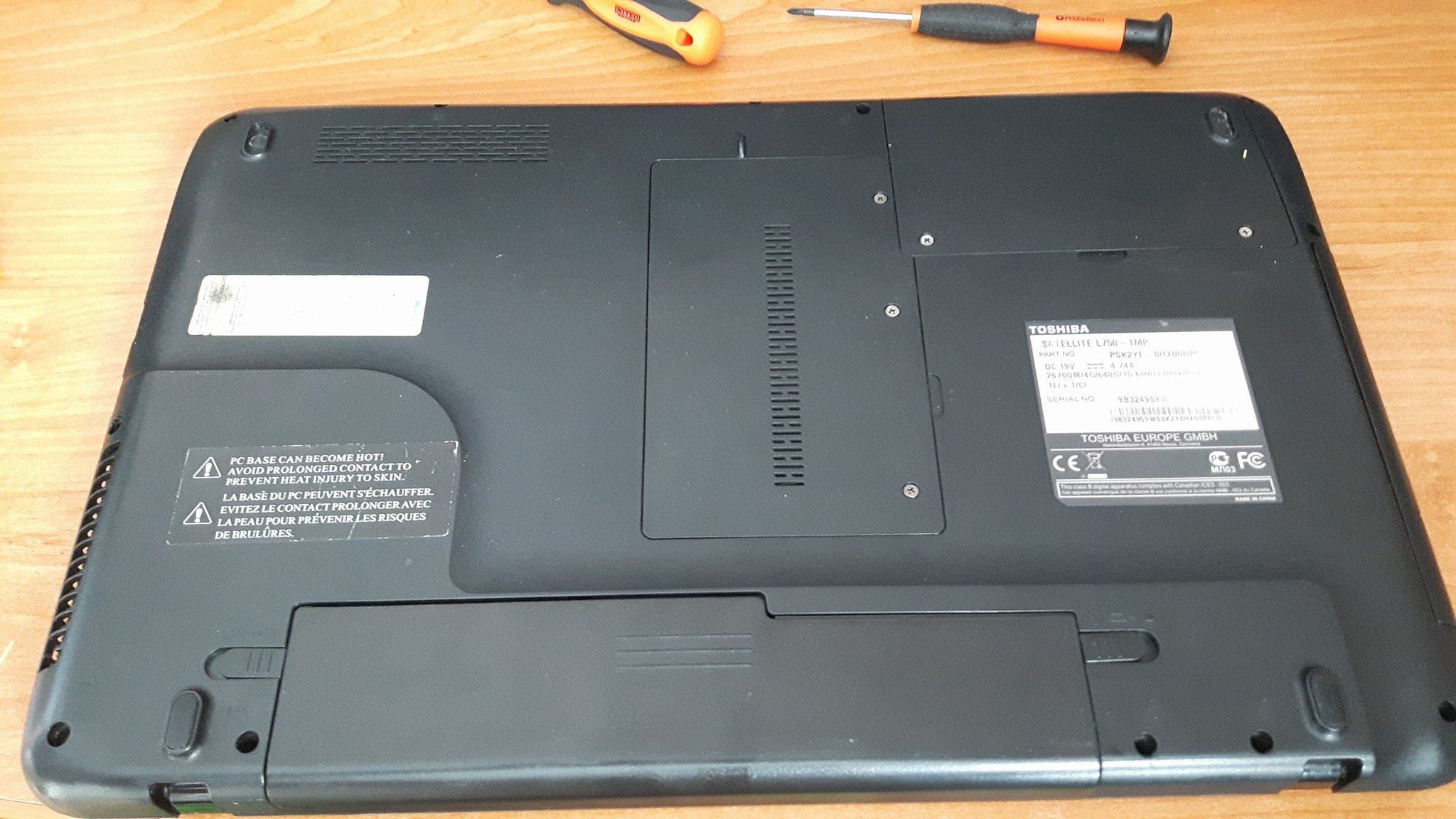 Kolejny laptop na warsztacie, tym razem Toshiba Sattelite – typowe objawy kilkuletniego sprzętu: głośno huczy, grzeje się, czasem sam restartuje, ekran ciężko się otwiera i skrzypią zawiasy, bateria nie trzyma bez zasilacza. Laptop rozłożony na czynniki pierwsze, dokładnie wyczyszczony z kurzu, odetkane otwory wentylacyjne, wymieniony wiatrak procesora z powodu nadmiernie wysłużonego łożyska, wyczyszczone i przesmarowane zawiasy, dołożona pamięć ram, na koniec wymieniona bateria na nowa o większej pojemności. Sprzęt odzyskał swoją młodość, gdyż miał niezłą konfiguracje i posłuży jeszcze długo.